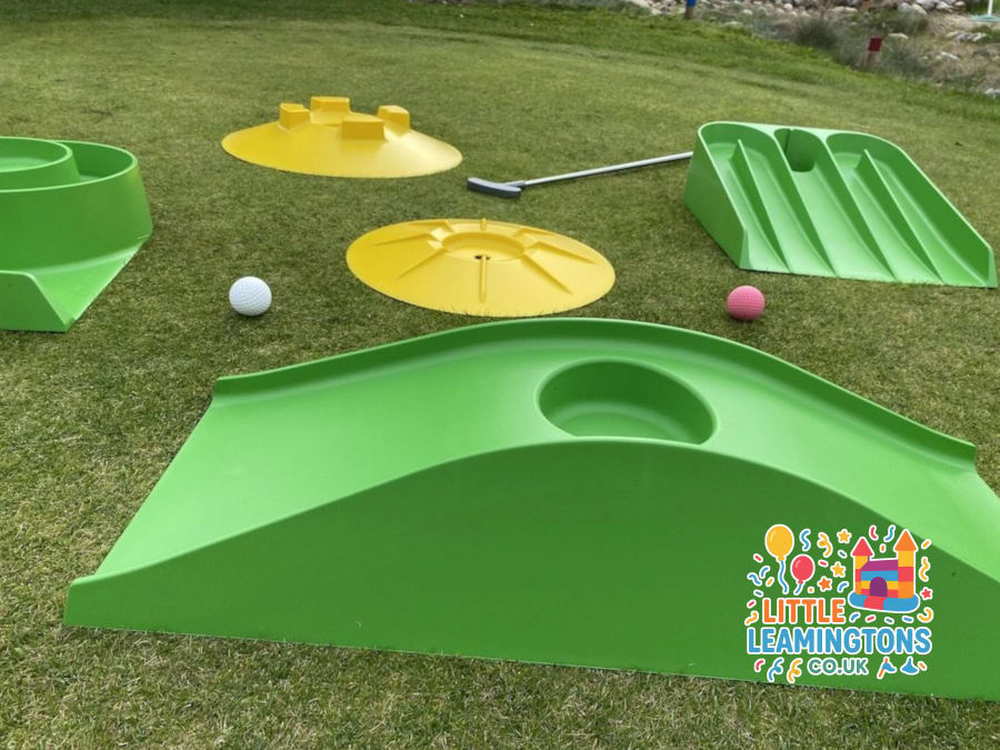 ✅ Fun for children and adults alike ✅ Includes putters, balls & colourful obstacles ✅ Quick to set up indoors or outdoors ✅ Great add-on to castles, soft play, or party packages